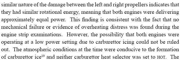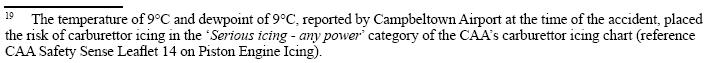 Although the report canvasses the possibility of carby icing, it's