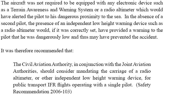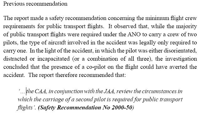 The UK CAA accepted the recommendation but then decided not to act