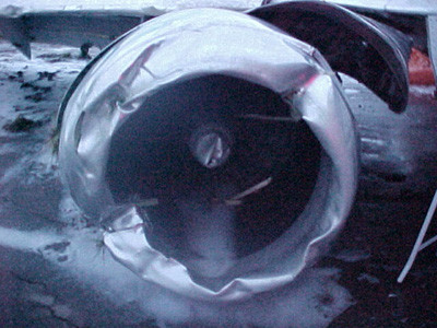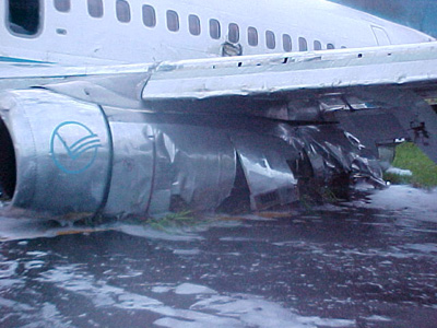 pre-dawn darkness and heavy fog, the aircraft then veered off the side of